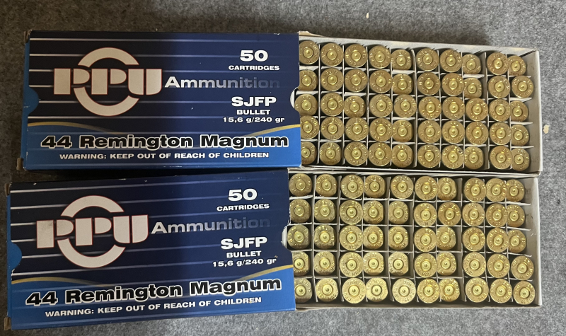 2 losgleiche 50er Packungen PPU Hülsen in .44 Rem Mag.