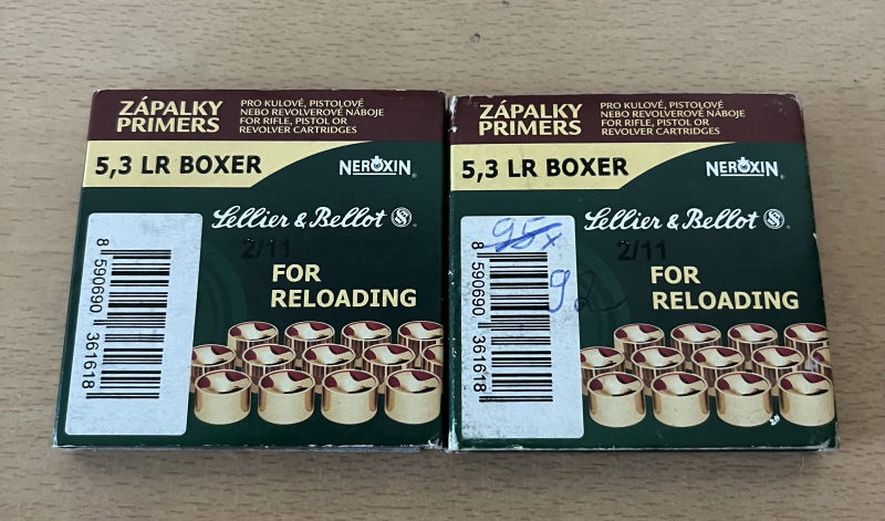 Sie bieten auf 192 Stück Zündhütchen von Seller & Bellot, 5,3 LR Boxer.