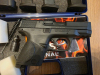 • Zubehör: Riesenset: 3 Kompaktmagazine, ein verlängertes Magazin, ein Paddleholster (RH), Koffer, Abschussbecher, Reinigungsbürste, Anleitung.