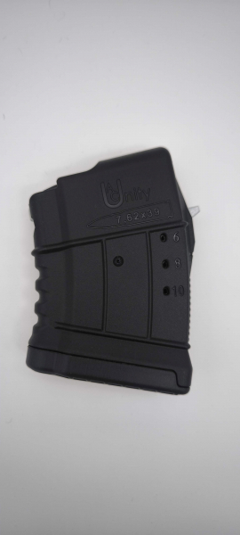 Mit einer Kapazität von 10 Schuss im Kaliber 7,62x39 mm ist dieses Magazin ideal für Sportschießen, die Jagd, taktische Einsätze und mehr. Es verfügt über ein leichtes, robustes und UV-beständiges Polymergehäuse. Es ist auf langlebigkeit ausgelegt und verfügt über eine Feder aus Kohlenstoffstahl und einen Polymer-Zubringer für eine reibungsarme und zuverlässige Zuführung der Patronen.