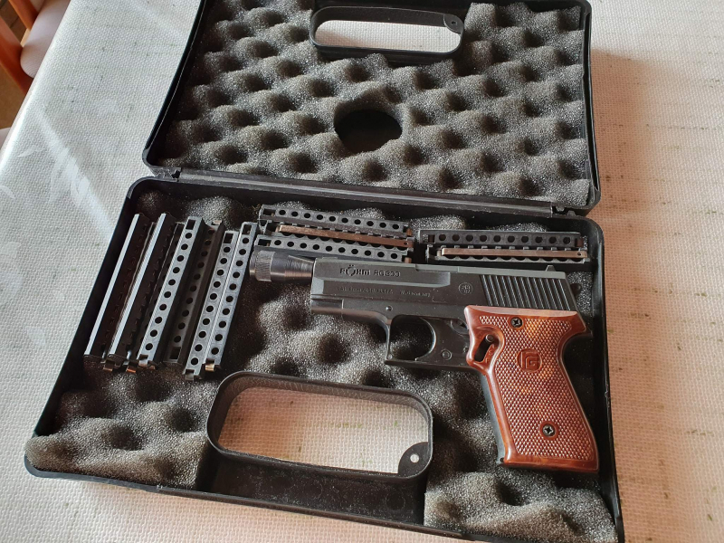 Schreckschusspistole, Marke RÖHM, Modell RG 300, im Kaliber 6mm Flobert Knall mit Zubehör: 15 Magazine (90 Platzpatronen) Reinigungsbürste und 1 Abschussbecher, PTB-Nr. 327. - siehe Bilder - Es handelt sich hierbei um einen Privatverkauf. Die Auktion erfolgt daher unter Ausschluß jeglicher Gewährleistung, Garantie und Rücknahme. Der Bieter erklärt sich damit einverstanden und erkennt dies mit seinem Gebot an!