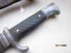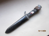 Das ist jedenfalls ein Stück wo alles aus der Zeit vor 1945 stammt. Entsprechend sind die Gebrauchs-und Altersspuren. Die Scheide hat noch ca 90% des Originallackes. Das Emblem ist im Griff leicht beweglich (Wipper). Das Messer geht schön sanft in die Scheide. Das Leder an der Scheide zeigt keine Schäden. Die Stempel in der Klinge sind gut zu erkennen. RZM 7/85 und AES im Viereck besagen, dass der Hersteller Arthur Evertz, Solingen ist.