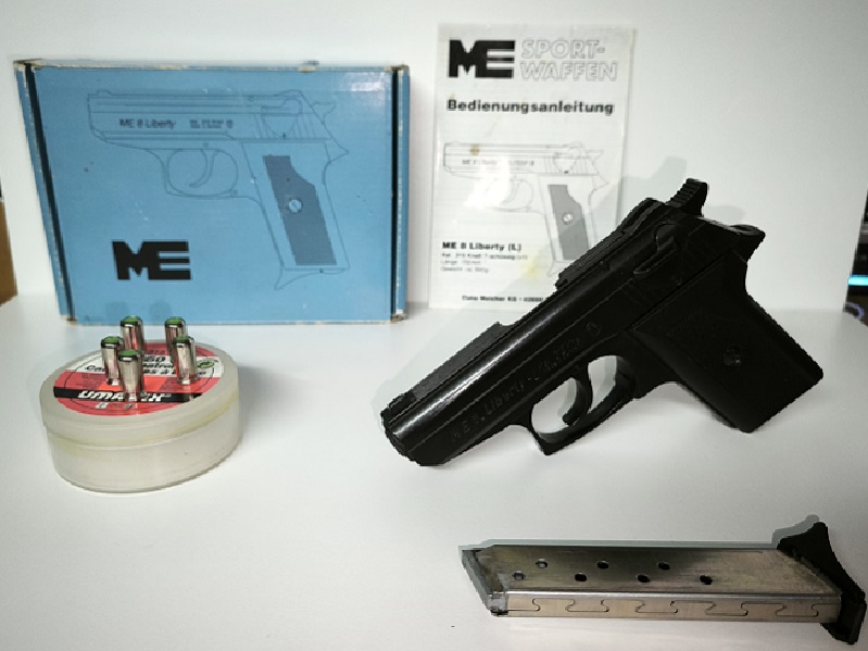 5 Patronen, der Abschussbecher, das Magazin, eine Anleitung