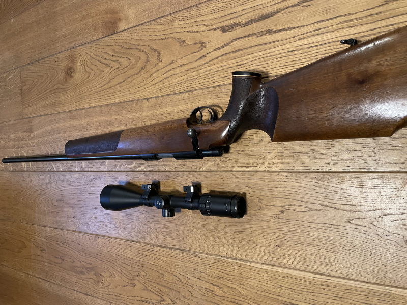 Verkaufe Einzellader Anschütz Match Kaliber 22 Hornet. Waffe wie auf den Fotos zu sehen mit Deutschem Stecher.
