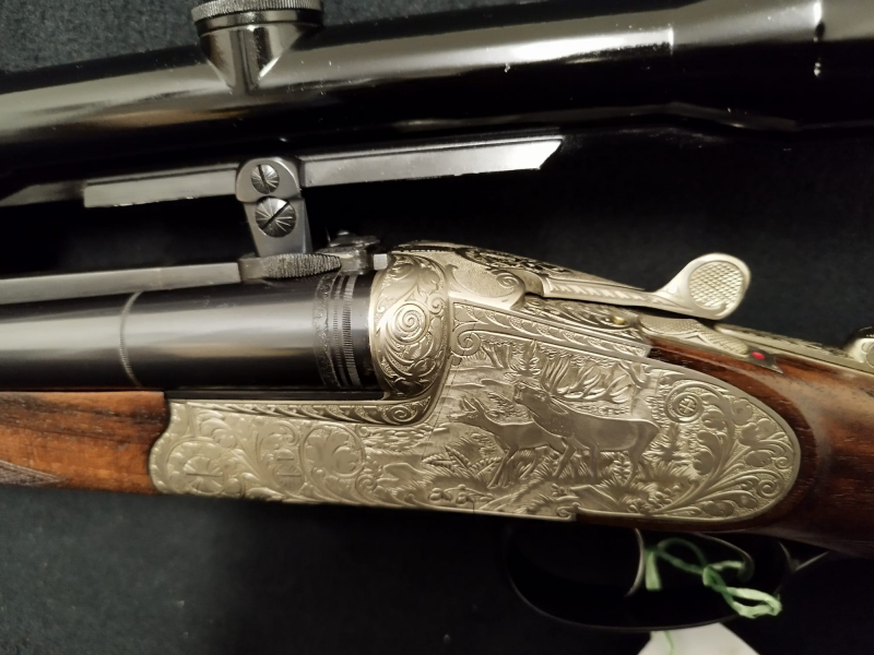 1 Stück Luxusdrilling Krieghoff - Neptun Seitenschlossausführung, Kal. 16/70, Kugel 5,6 x 50 R Magnum. SEM Zeiss 6 x 42 - Z - Abs. 1. Absoluter neuwertiger Zustand. Krieghoff Qualität der Spitzenklasse, Schaftmagazin in Schaftkappe. Schrankwaffe Lauflänge 63,5 cm, Schaft 37 cm, Gesamtlänge 105 cm. Diese Waffe befindet sich im Zustand siehe Bilder.