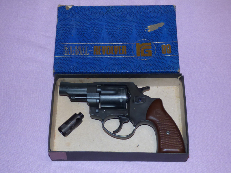 Sie bieten auf den Gas-/Schreckschussrevolver auf den Fotos. Röhm RG 89, Kaliber 9 mm RK. Noch die alte PTB 451 (also echte Röhm Fertigung) mit minimaler Laufsperre. Lediglich eine Art Schiene im oberen Bereich des Laufes (man kann bis auf den Stahlstoßboden durchschauen - siehe Foto). Hier kann tatsächlich noch eine Bürste zur Reinigung verwenden.