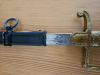 Wehrmacht Löwenkopfsäbel für Offiziere, unter dem hinteren Parierlappen mit Hersteller Eickhorn punziert, Adler leider entnazifiziert, unten auf der Parierstange D.R.P. punziert, beide Glasaugen vorhanden, ein Schräubchen am Mundblech fehlt, Griff ist fest, nix wackelt. Länge ca. 95cm.