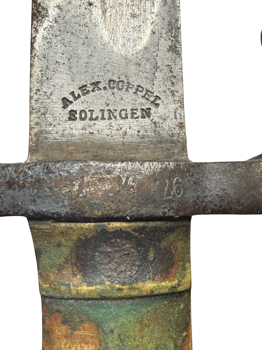 FW-Faschinenmesser, nur Rostspuren, Klinge schön mit reinen Spuren von der Scheide. Stahl-Gefäß (magnetisch)