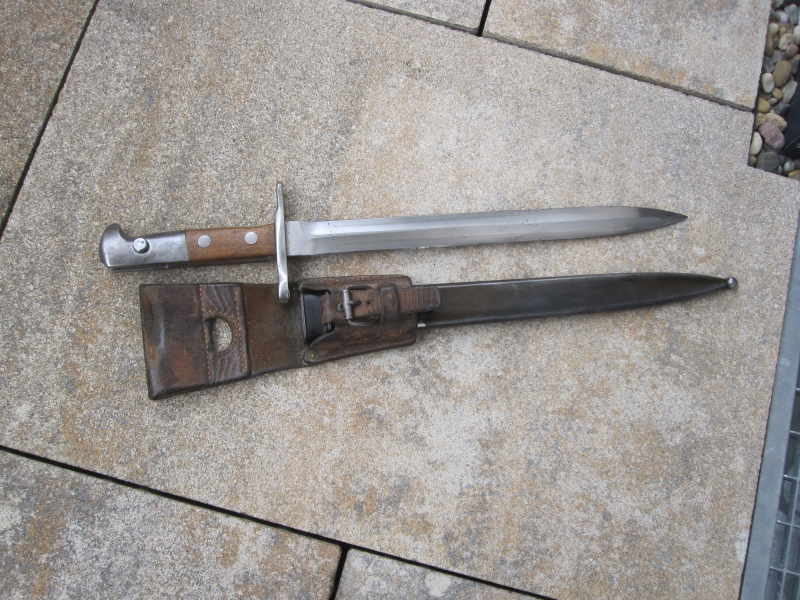 Gut erhaltenes Schweizer Bajonett M1918 mit Koppelschuh, Leder noch nicht verhärtet, Drücker leichtgängig , Klinge ungeschliffen. Alles Weitere entnehmen Sie bitte den Bildern. Die Bilder sind Teil der Beschreibung. Alle Angaben sind nach bestem Wissen und Gewissen gemacht, aber trotzdem das Unvermeidliche: Die Ware wird unter Ausschluss jeglicher Gewährleistung (Mängelansprüche) verkauft. Keine Rücknahme, Nachverhandlungen zwecklos. Bitte bieten Sie nicht, wenn Sie mit diesen Bedingungen nicht einverstanden sind.