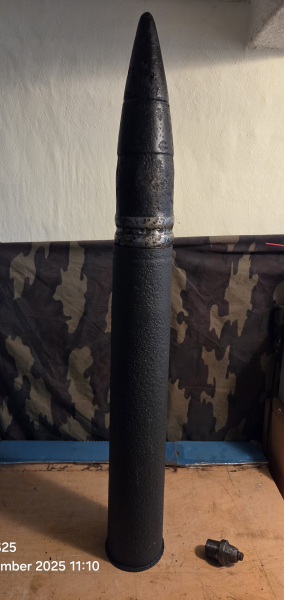 Deutsche 8,8cm Panzer Granate KWK43 mit Hülse für Tiger Panzer oder Flak mit zerlegbaren Bodenzünder.