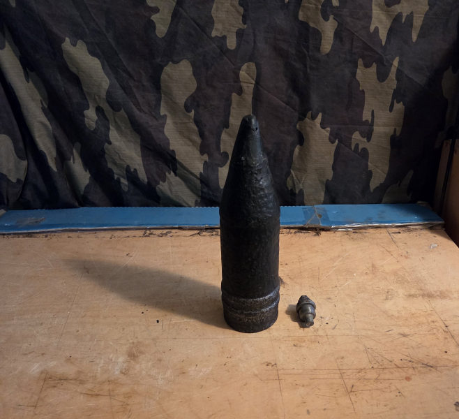 Deutsche 7,5 cm Panzer Granate mit Zünder (Bombe Bodenfund)