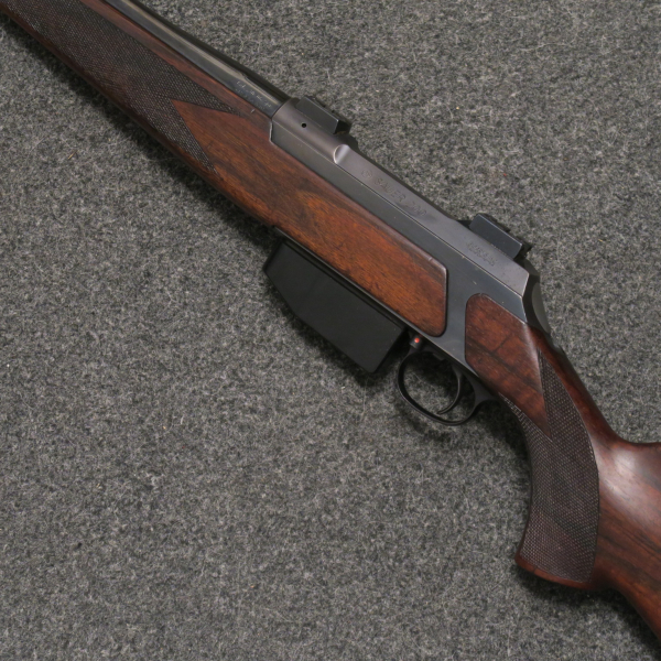 Angeboten wird eine Repetierbüchse Sauer Mod. 200 Kal. 30-06. Sehr schöner, dunkel gemasterter Holzschaft. Schaftlänge 37cm, Lauflänge 58cm. Mündungsgewinde M14x1 (derzeit mit ERA-LOCK Adapter)