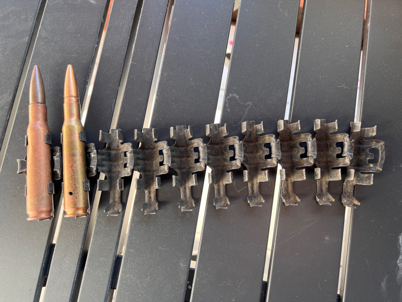 Russischer Patronengurt 12,7x108mm mit 2x .50 BMG WK2 1943, "LC 43" --> Lake City 1943, schöner Zustand