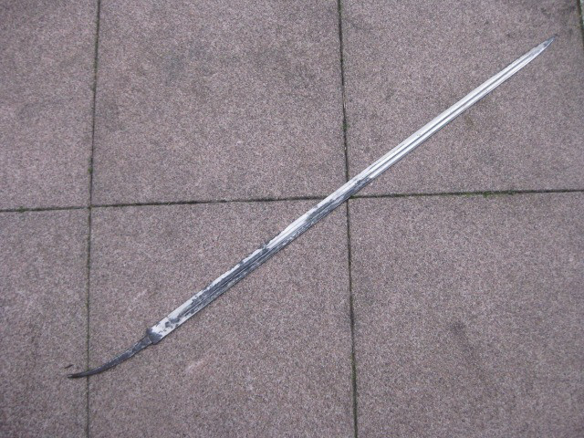 Selten einzeln erhältlich: IOD 89ger Klinge von WKC mit Nickel- und Korrosionsschäden. Ideal zum Aufarbeiten bzw. Komplettieren eines solchen Degens. Zustand s. Fotos. Klingenlänge= 80cm, Angellänge = 14cm, Klingenbreite = 25mm. Schraubgewinde vorhanden.