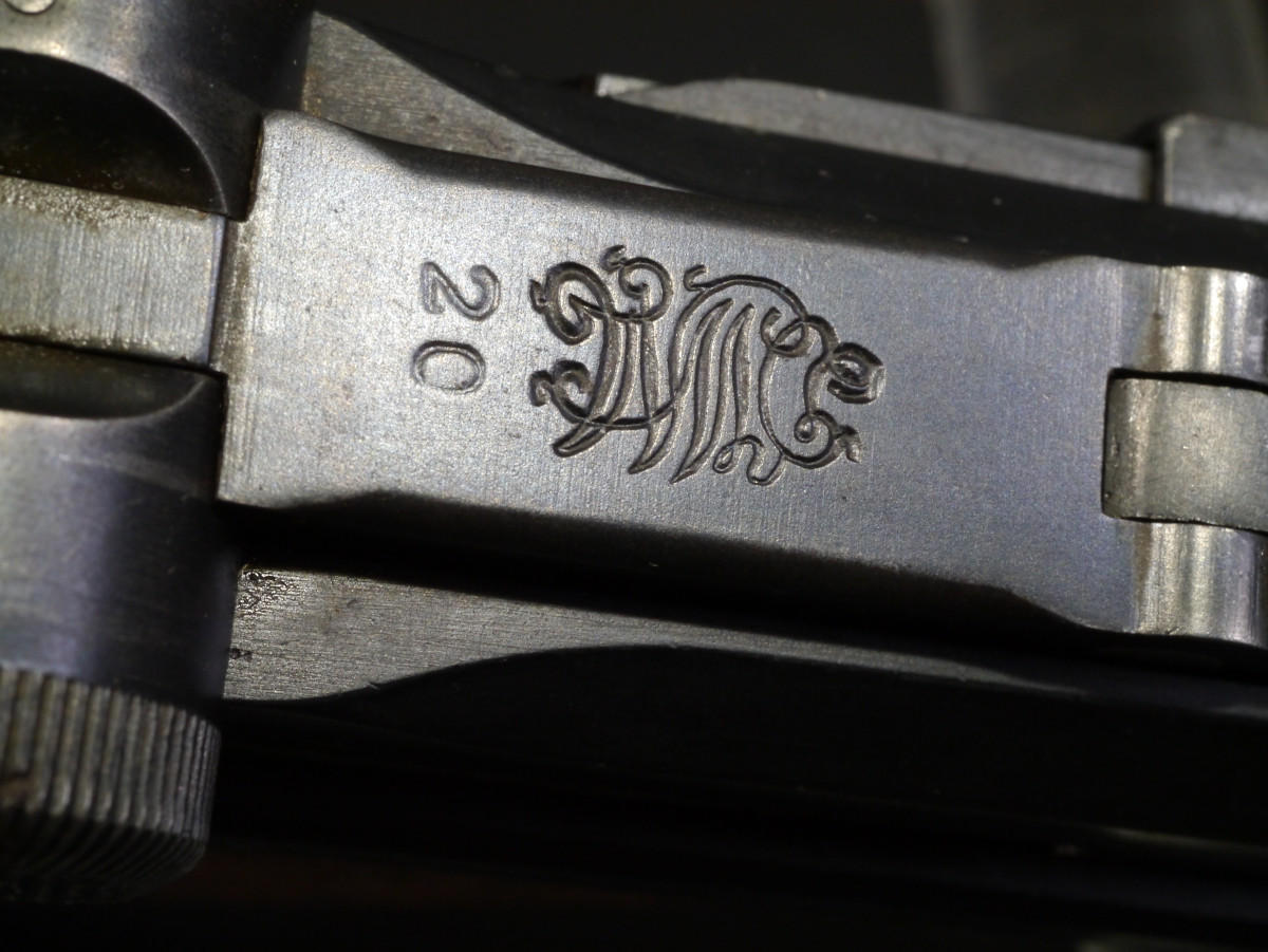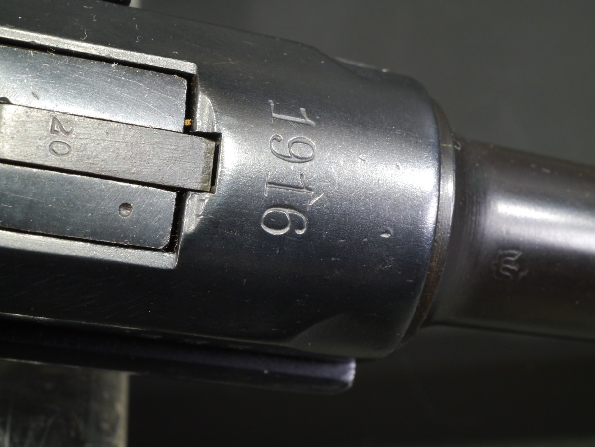 DWM Monogramm auf dem Kniegelenk, Jahr 1916 auf dem Hülsenkopf.