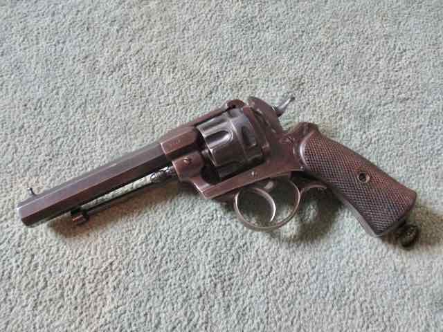 Als Webley konnte ich ihn auch nicht einordnen. Aufgrund der englischen Beschriftung und der sauberen Verarbeitung kommt er meines Erachtens aus Großbritannien. Für eine einfache Kopie von einem Trittbrettfahrer in der damaligen Zeit ist die Waffe viel zu schön verarbeitet. Die gestichelte Linie entlang des Rahmens und der Trommel lässt eher auf eine zivile Fertigung, oder auf eine Offizierswaffe schließen. Für das Alter hat die Waffe ja einen ausgezeichneten Erhaltungszustand. Vielleicht handelt es sich um einen Prototypen der damaligen Hersteller wie Webley, Adams usw. Kaliber