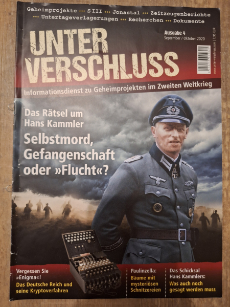 Sie bieten hier auf eine sehr interessante Ausgabe der Zeitschrift "Unter Verschluss - Informationsdienst zu Geheimprojekten im Zweiten Weltkrieg". Tiefgehende Details über das Schicksal der XX-Größe Hans Kammler und ein interessanter Bericht über die Chiffriertechnik abseits der bekannten Enigma.