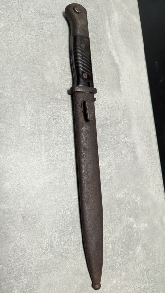 Das Bajonett und die Scheide sind Herstellergleich, leider ist der Hersteller auf der Scheide nur sehr schwer erkennbar.