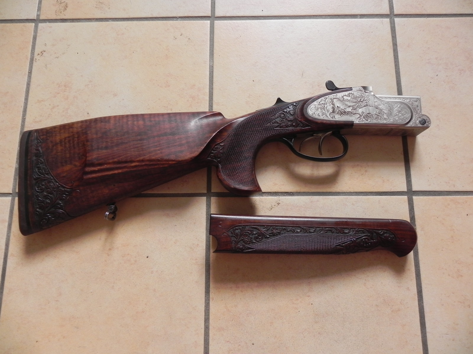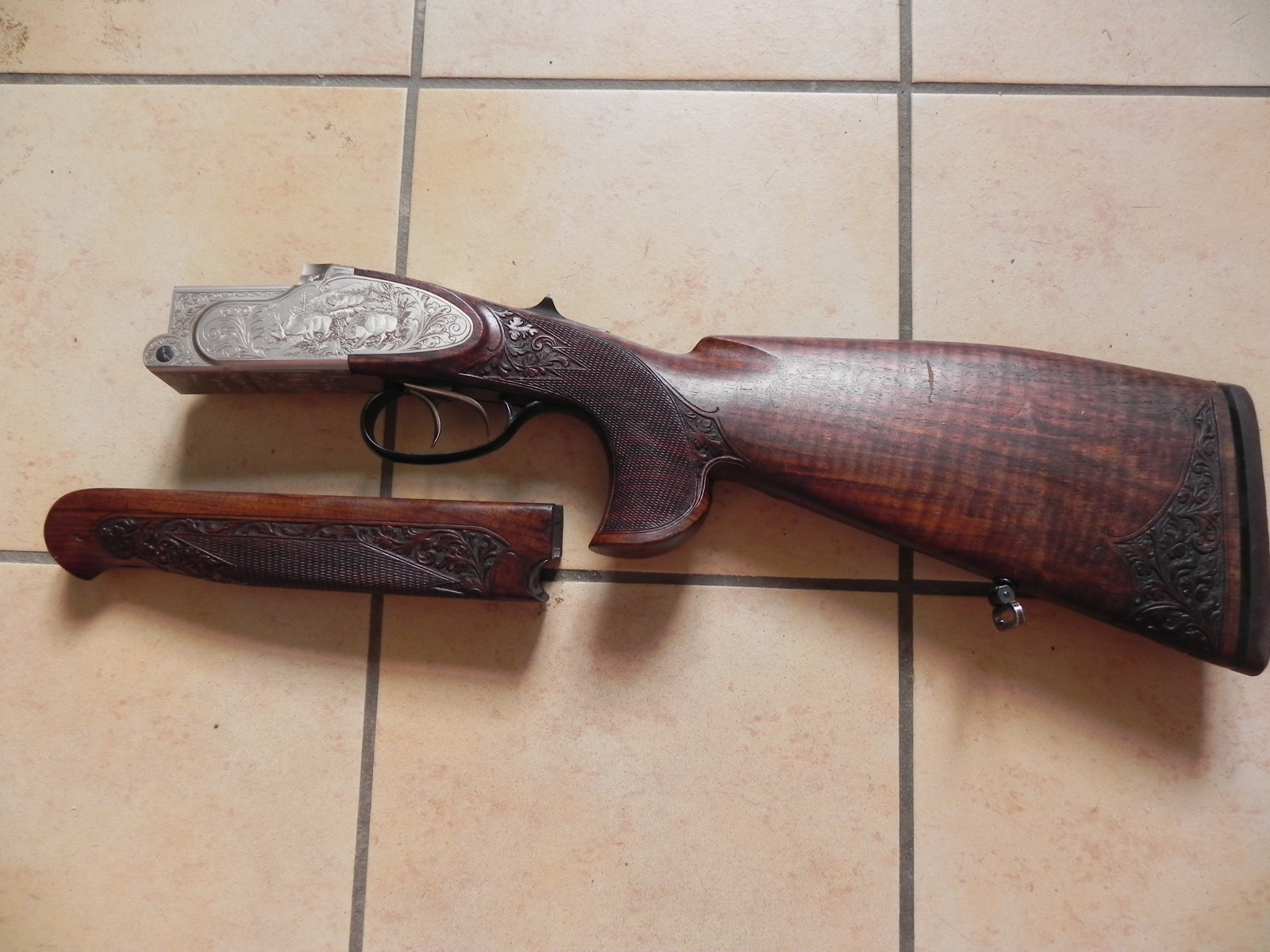 Zum Verkauf kommt eine Komplettierung für eine Krieghoff Ultra 20. Es handelt sich um den Hinterschaft mit System und dem passenden Vorderschaft für Läufe mit dem NICHT- thermostabilen Laufprofil. Der Vorderschaft ist für Bergstutzenläufe gedacht, kann aber vom Büchsenmacher einfach geweitet werden, so dass er auch für Laufbündel als Bockdoppelbüchse passt. Es handelt sich um ein Stahlsystem mit langen Seitenplatten und herrlichen Gravuren. Der Linksschaft weisst ebenso wunderschöne Verschneidungen auf und hat leichte Gebrauchsspuren vom jagdlichen Alltag.