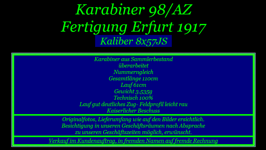 Bei der angebotenen Ware handelt es sich um eine gebrauchte Waffe, die einen historischen Wert als Sammlerstück hat und zudem als Antiquität zu bezeichnen ist.