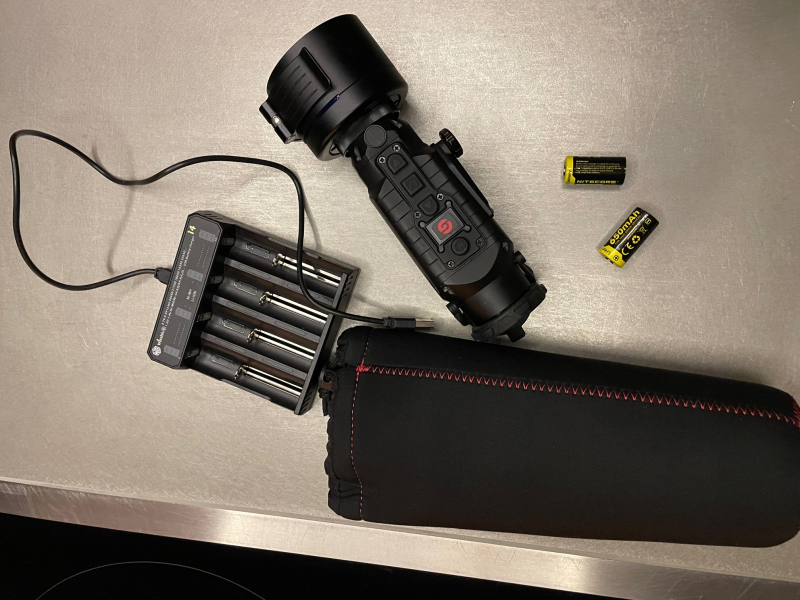 Ladegerät, Akkus und praktische Tasche für den Schutz im Rucksack ist mit dabei.