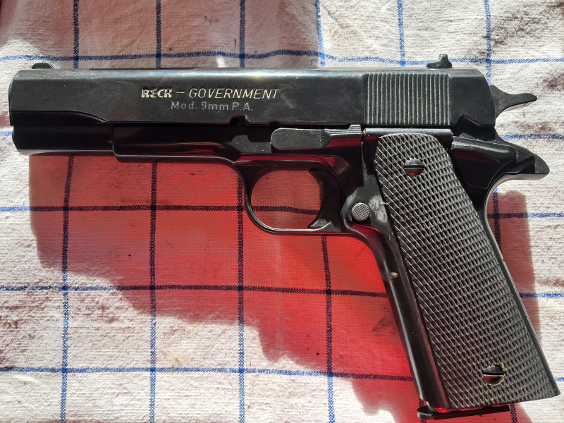 Gelegenheit aus großer Sammlungsauflösung und Nachlass! Viel schönes,seltenes und solides nach alter Qualität, Kenner wissen hier bescheid, werden demnächst hier eingestellt. Bei Interesse einfach reinschauen und bei Fragen melden.Hier ein besonderes, fantastisches Exemplar für den Sammler/Kenner/Liebhaber, der nur das Beste und besondere haben möchte! Das hier ist ein frühes Modell und wird so nicht mehr gebaut und angeboten! Alte PTB-NR 523. Gewinde für Pyrobecher ist ebenfalls vorhanden. Wie auf den Bildern ersichtlich, fast noch wie aus dem Laden, leichte Gebrauchsspuren, ein wahres Prachtstück so und das beste, was man sich heute noch zulegen kann! Einmalig so das ganze. Sammler und Kenner sind hier bestens beraten. Kaliber 9mm P.A., Frei ab 18. Die Bilder als Beschreibung beachten.Von privat ab 1€ ohne Rücknahme oder Gewährleistung da Privatverkauf.