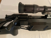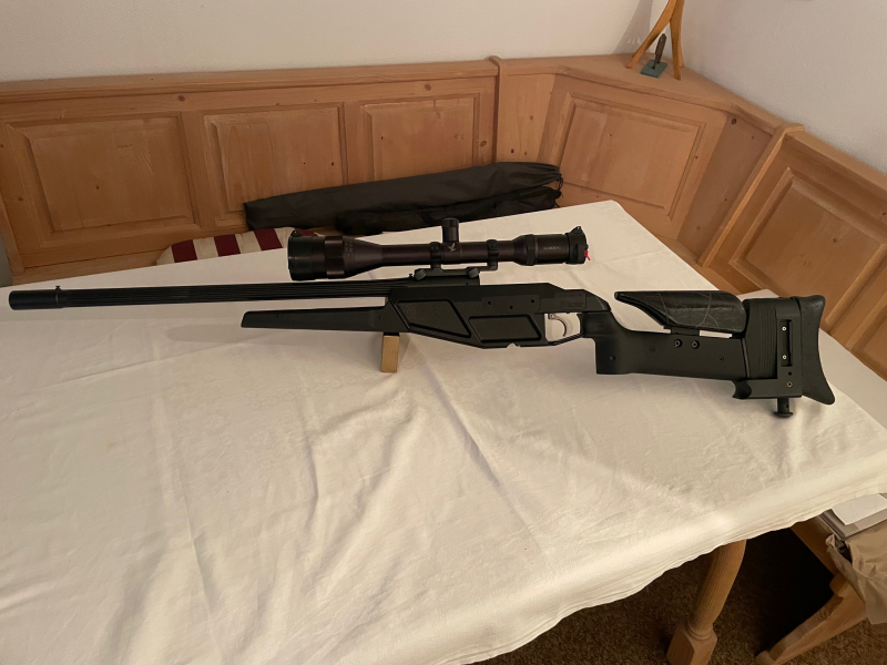 Blaser R 93 UIT .308 Win. Tactical mit 10-Schuß Magazin, Lauf aus Chrom-Molybdän-Stahl 60cm, Abzug breite Abzugszunge in Längsrichtung verstellbar. Vorzugsgewicht und Weg einstellbar. Druckpunktgewicht variabel (serienmäßig auf auf 1500 g einjustiert). Triggerstop. Ganzmetall-Schaft aus schwingungsdämpfendem Aluminium Pulferbeschichtet, mit Profilschiene im Vorderschaft. Schaftkappe horizontal und vertikal verestellbar sowie um 15° schwenkbar. Schaft mit Hecksporn und montierten tuning Teilen, Orginalteile werden mitgeliefert, mit ZF SWAROVSKI 6-24x50. Das Gewehr wurde von mir am 19.03.1999 neu gekauft, mit dem Gewehr wurde an 10 Wettämpfen auf 300m teilgenommen und es wurden immer vordere Plätze erziehlt, mit Serien Match-Munition kann ein guter Schütze auf 300m bei 10 Schuß jederzeit einen Streukreis von unter 30mm erziehlen, meine besten Ergebnisse lagen bei 28mm. Mit dem Gewehr wurden aus Zeitmangel inclusive Probeschüsse nur 380 Schuß abgegeben und es wurde die letzten 10 Jahre nicht mehr benutzt, reine Schrankwaffe in sehr gutem Zustand.