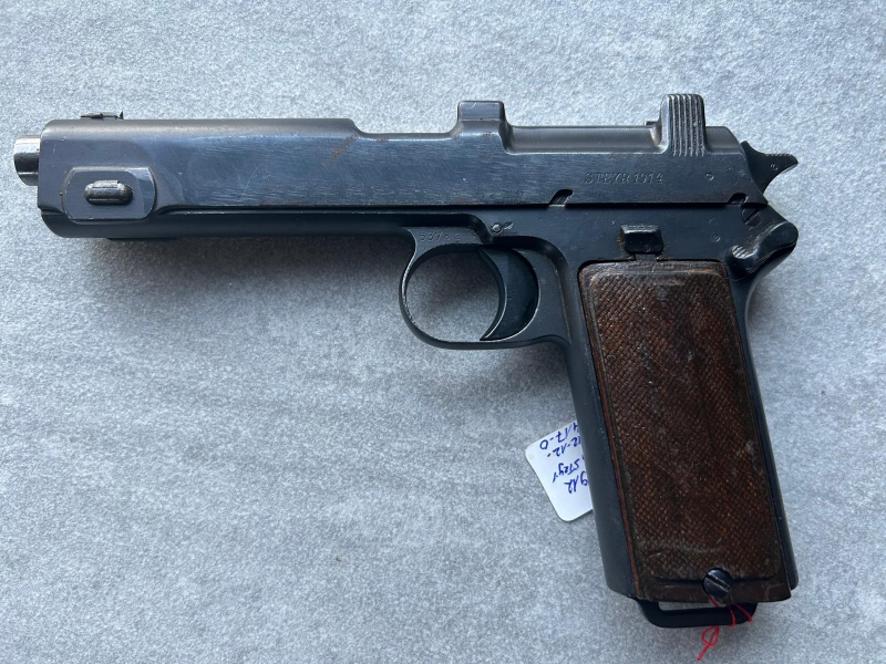 Pistole Steyr Modell 1912.Kaliber 9mmSteyr. Herstellungsjahr 1914. Österreichische Abnahmestempel.Lauf gut, klare Züge und Felder. Waffe ist Nummerngleich. Griffschalen ohne Risse. Waffen stammt aus einer Sammlung, wird im Kundenauftrag verkauft. Differenzbesteuerung. Alle Angaben nach bestem Wissen und Gewissen. "Beantworte keine E-Mails". Den beschriebenen Zustand entnehmen Sie bitte aus den Bildern.