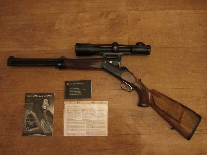 Verkaufe meinen Drilling Blaser BD14 mit Präzisions-Wechselmontage Negele und Zielfernrohr Leica Magnus 2,4-16x56i mit Schiene. Ausführung: Standard; schwarzer Systemkasten; Kaliber: 30-06 (30 Schuss), 5,6x52R (20 Schuss), 20/76 (Schrot 8 und FLG 8 Schuss); Die Waffe habe ich hin und wieder jagdlich zum Ansitz geführt, daher leichte, im Schräglicht sichtbare Gebrauchsspuren am Hinterschaft. Den Gesamtzustand beschreibe ich ansonsten mit sehr gut. Das Patronenetui und den Schaftpatronenhalter gebe ich dazu. Privatverkauf ohne Garantie und/oder Rücknahme.