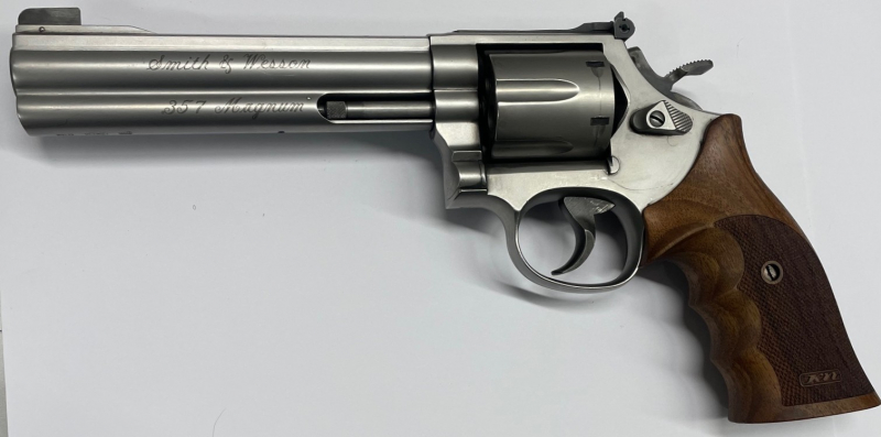 Smith and Wesson 686 Target Champion (686-4), Kaliber .357 Magnum(.38 Special), sehr wenig geschossen. Montiert ist ein Nill Griff. Die Waffe hat minimale Gebrauchsspuren. Der Verkauf erfolgt im Kundenauftrag ohne Garantie. Der Revolver kann nach Absprache bei mir besichtigt werden. Die Waffe wird verkauft, weil der Besitzer jahrelang keine Zeit zum Schießen hatte. Bei internationalem Versand bitte die Versandkosten erfragen.