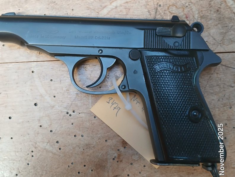 Pistole Walther Mod. PP im Kaliber .22lfB; dt. Beschuss aus dem Jahre 1977; überarbeitet?; phosphatiert? kein weiteres Zubehör