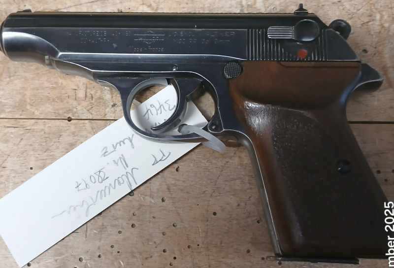 Pistole Manurhin/Walther Mod. PP im Kaliber 9 mm kurz; gültiger Beschuss: kein weiteres Zubehör
