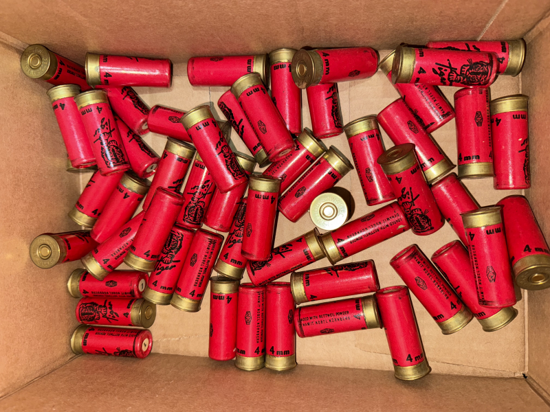 Zum Verkauf stehen 54 Patronen im Kaliber 12/65.