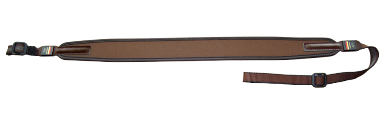 der bequeme und komfortabele Gewehrriemen von Niggeloh in braun. Das ca. 5,5cm breite Neoprenteil bietet eine große, weiche Schulter-Auflagefläche, die leichte Elastikwirkung lässt das Gewicht der Waffe geringer erscheinen. Die genarbte, gummiartige Unterseite ist eine wirkungsvolle Rutschsicherung. mit einer Länge von ca. 115 cm komplett verstellbar, weiche Schulterauflage und eine rutschsichere Unterseite natürlich made in Germany