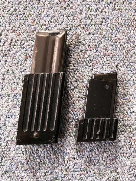 Ich biete hier zwei Magazine für das ERMA-Selbstladegewehr, Mod. EM 1 an. Das längere 10 Schuss-Magazin ist für das Kaliber .22 L.R. ausgelegt. Perfekte Ladefunktion. Das kürzere 5 Schuss-Magazin hat einen kleineren Zubringer mit dem sich meiner Meinung nach nur das Kaliber .22.kurz laden lässt. Nach meinen Recherchen wurde das EM 1 aber nur in den Kalibern .22 L.R. und .22 WMR hergestellt. Für welchen Zweck bzw. Kaliber das kurze Magazin gefertigt wurde kann ich deshalb nicht sagen. Über entsprechende Infos würde ich mich sehr freuen. Die Versandkostenpauschale beträgt für Deutschland 10,- Euro und für EU-Länder 22,- Euro. Der Versand erfolgt mit versichertem Paket und Sendungsnummer. Privatverkauf ohne Garantie und ohne Rückgaberecht.