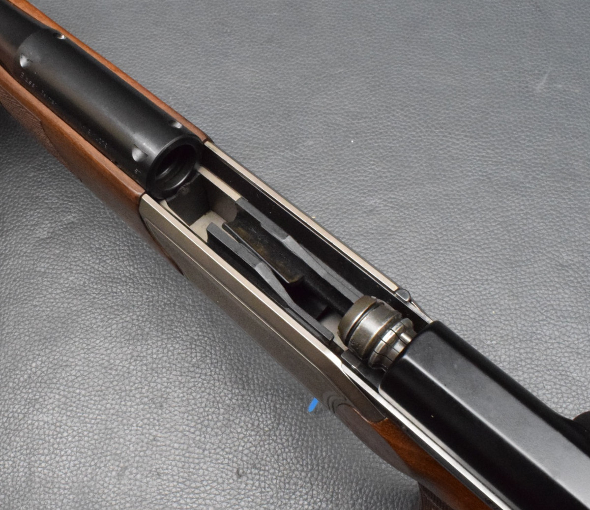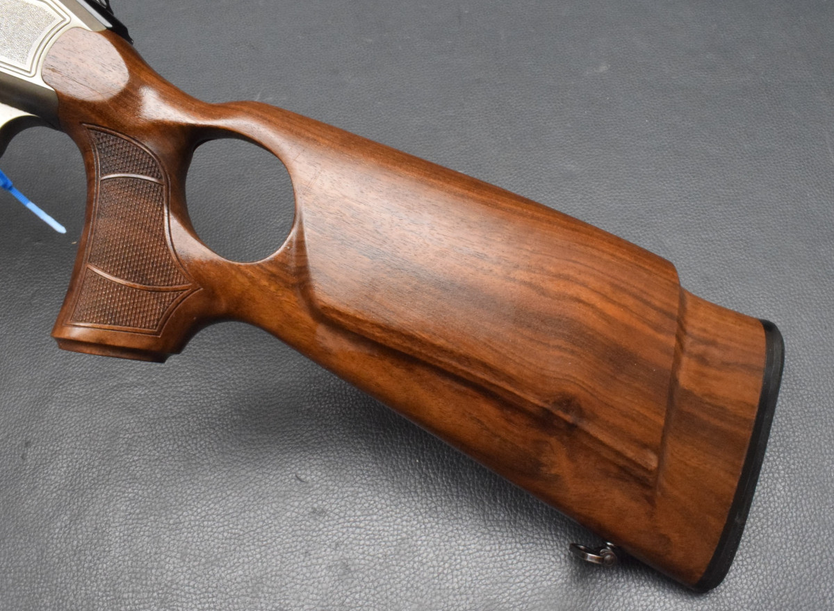 Systemrücken, Direktabzug, 4 Schuss Trommelmagazin. Nussholz jagdlochschaft, gummierte Schaftkappe, bayrische Backe mit Doppelpfalz,