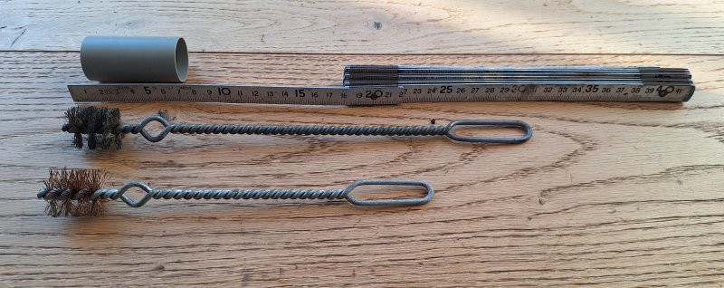Zum Verkauf kommt eine seltene Reinigungsbürste für die doppelläufige Leuchtpistole / Sternsignalpistole Mod.: Heym (Sig P4 oder Signalpistole 26,5 mm doppelrohrig), Kal.:4, Lauflänge: 231 mm, gefertigt für die deutsche Bundesmarine.