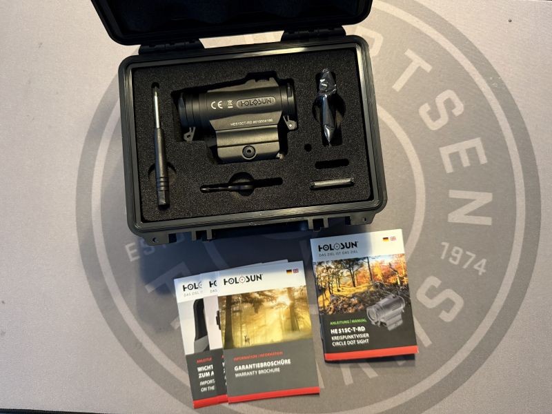 Biete hier ein Holosun Holosun ELITE HE515C-T-RD Titan Rotpunktvisier Militär + wechselbarem 2MOA Punkt, 65MOA Kreis Absehen, Picatinny/Weaver Schnellspannmontage, Killflash und Rechnung aus 11/2024 an.