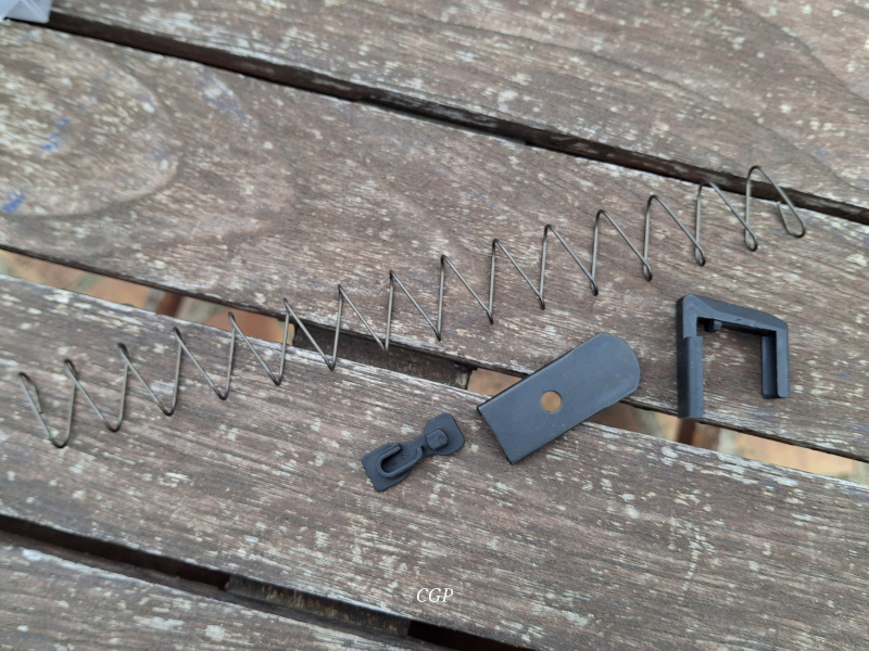 bestehend aus : Magazinfeder , Zubringer , Magazinboden , Magazinbodensicherung