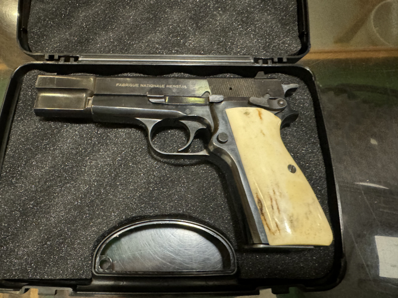 Guten Tag ich verkaufe eine Pistole Browning High Power 9mm Ludger.Die Pistole ist im neuwertigen Zustand und besitzt sehr gut angepasste Hirschhornschallen ,sehr schön in der Maserung.