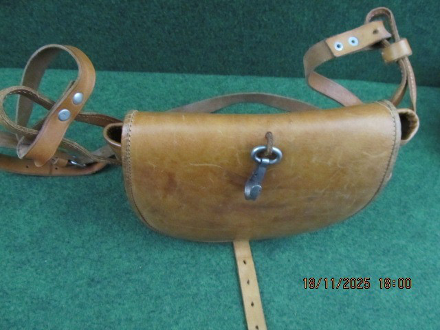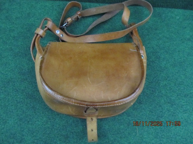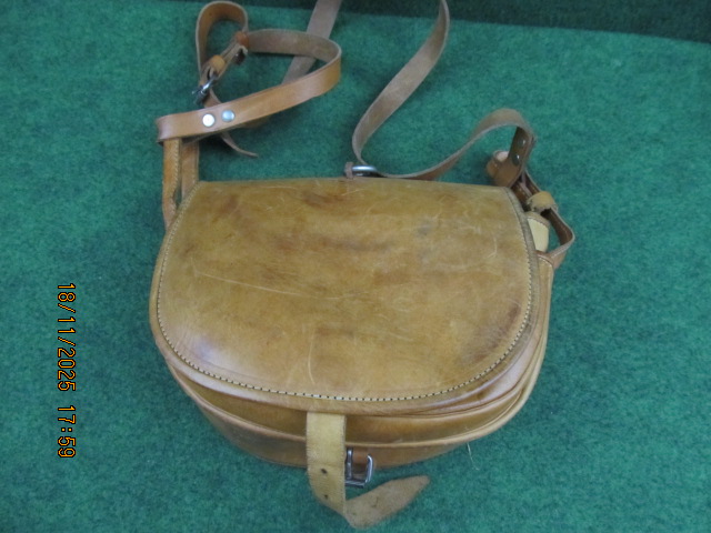 Sie bieten auf eine Patronentasche aus echtem, hellem Rindleder mit Trageriemen.