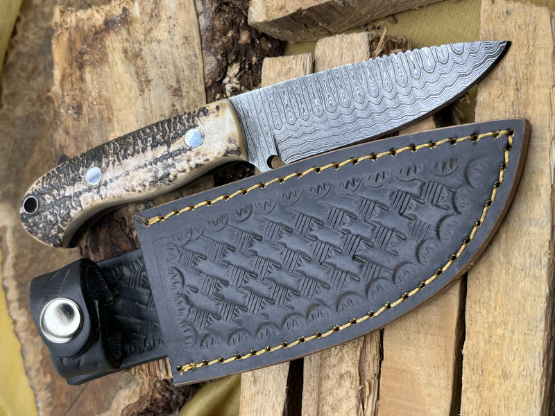 Über 200 Lagen Damast • Hunting Knife • Knochengriff • Full Tang Damastklinge • Inkl. Scheide