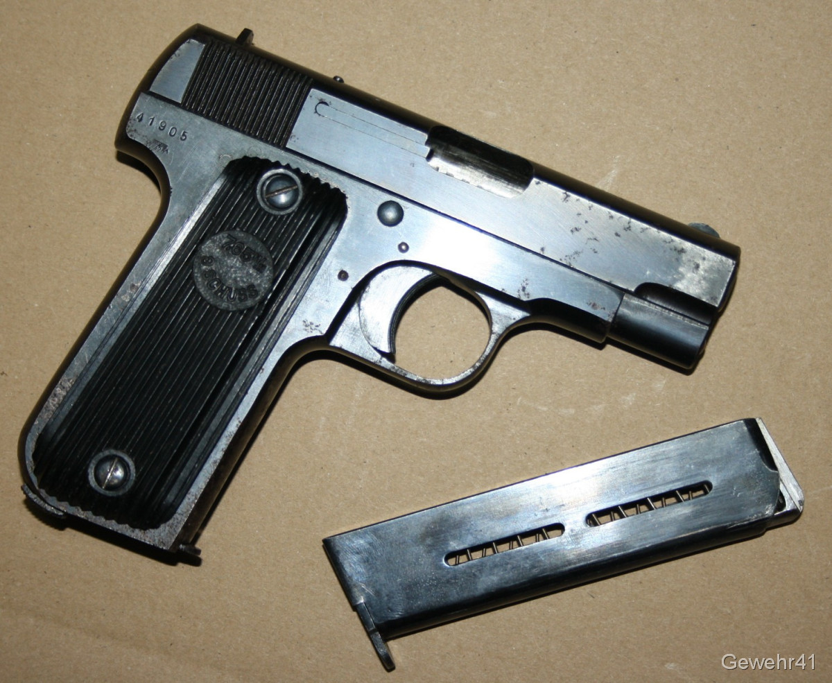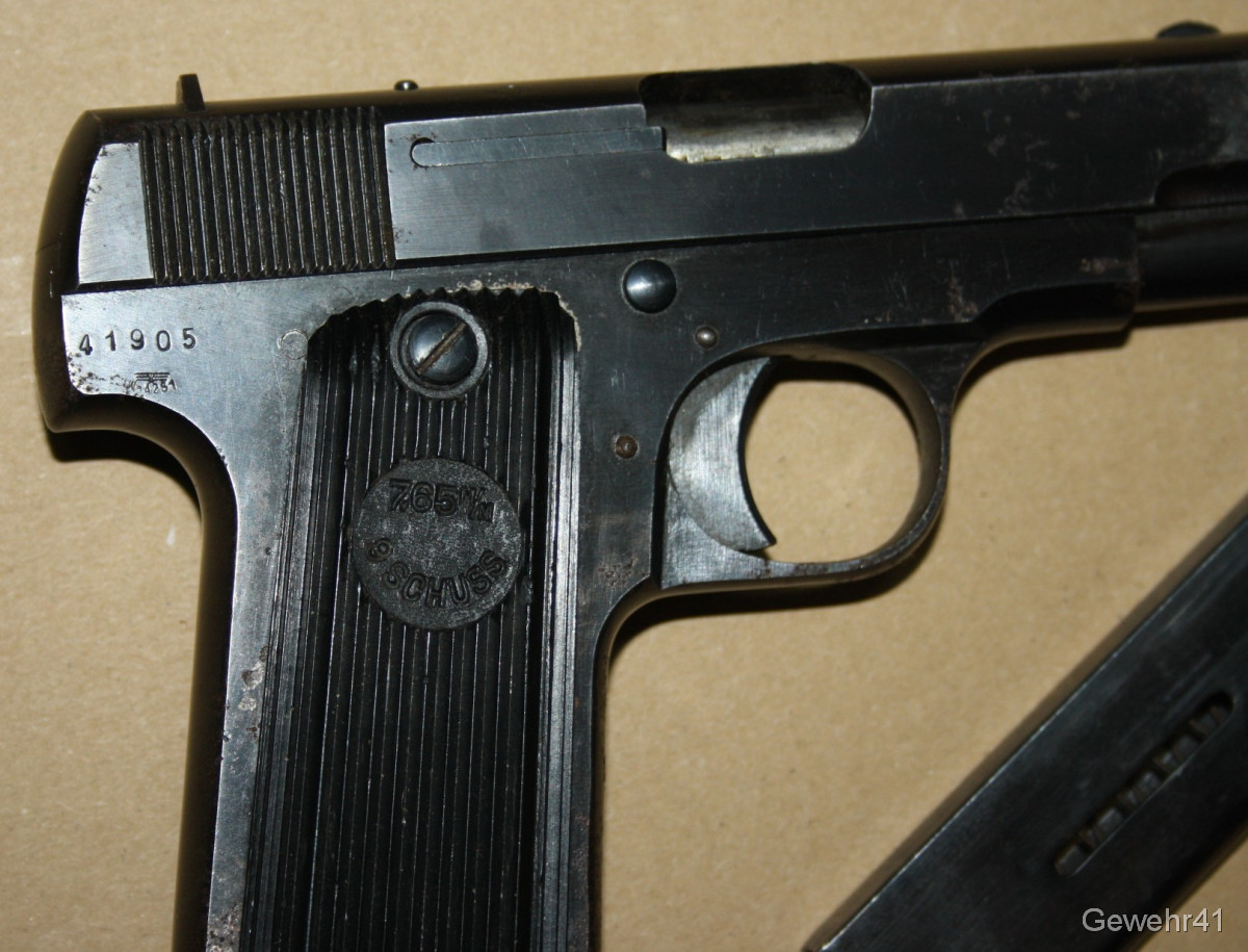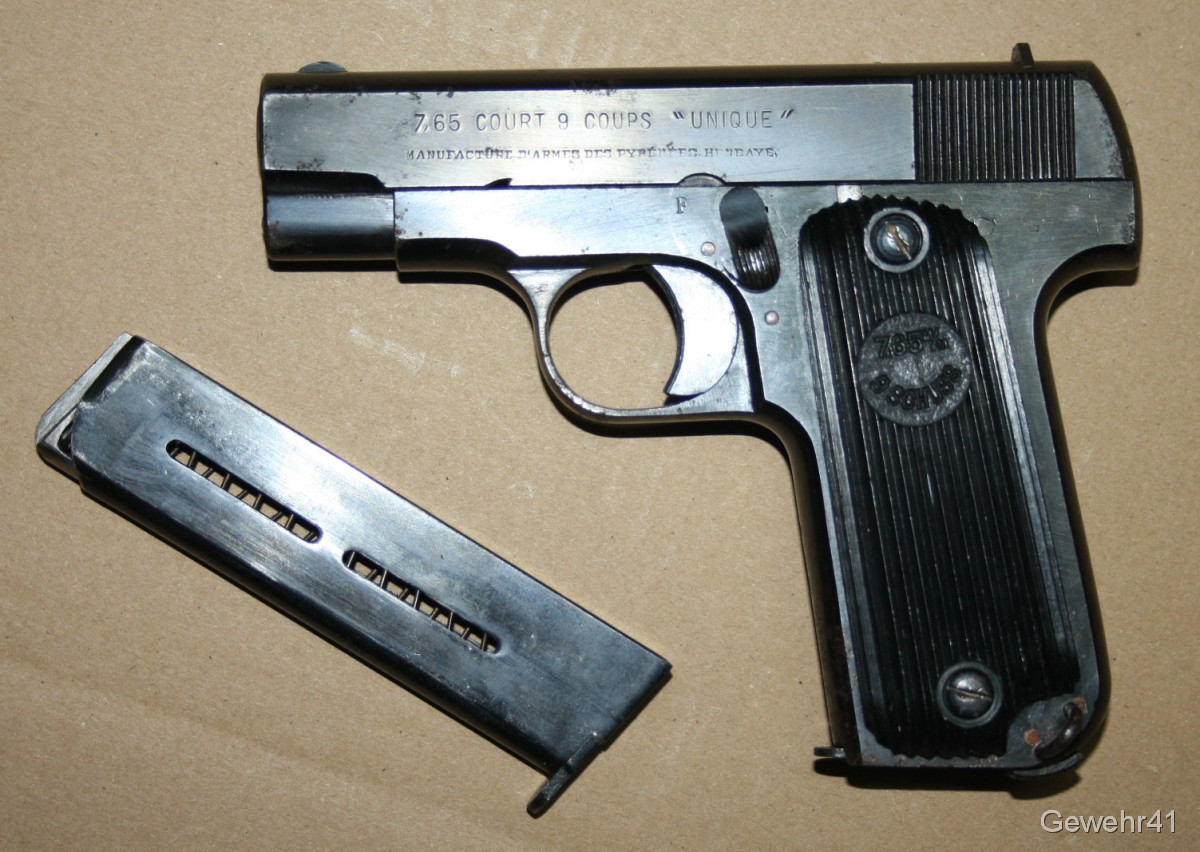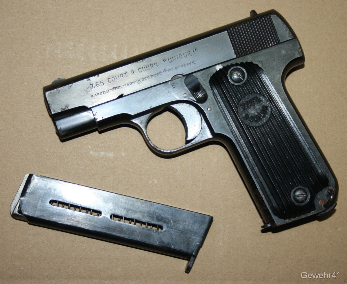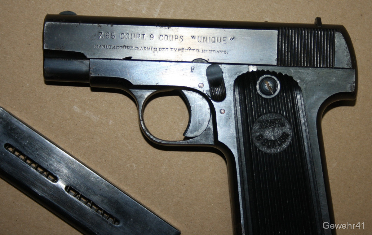 orig. Wehrmacht WK2 Pistole Unique 17 im Kal. 7,65mm Br. -mit Holster und Reserve-Magazin-