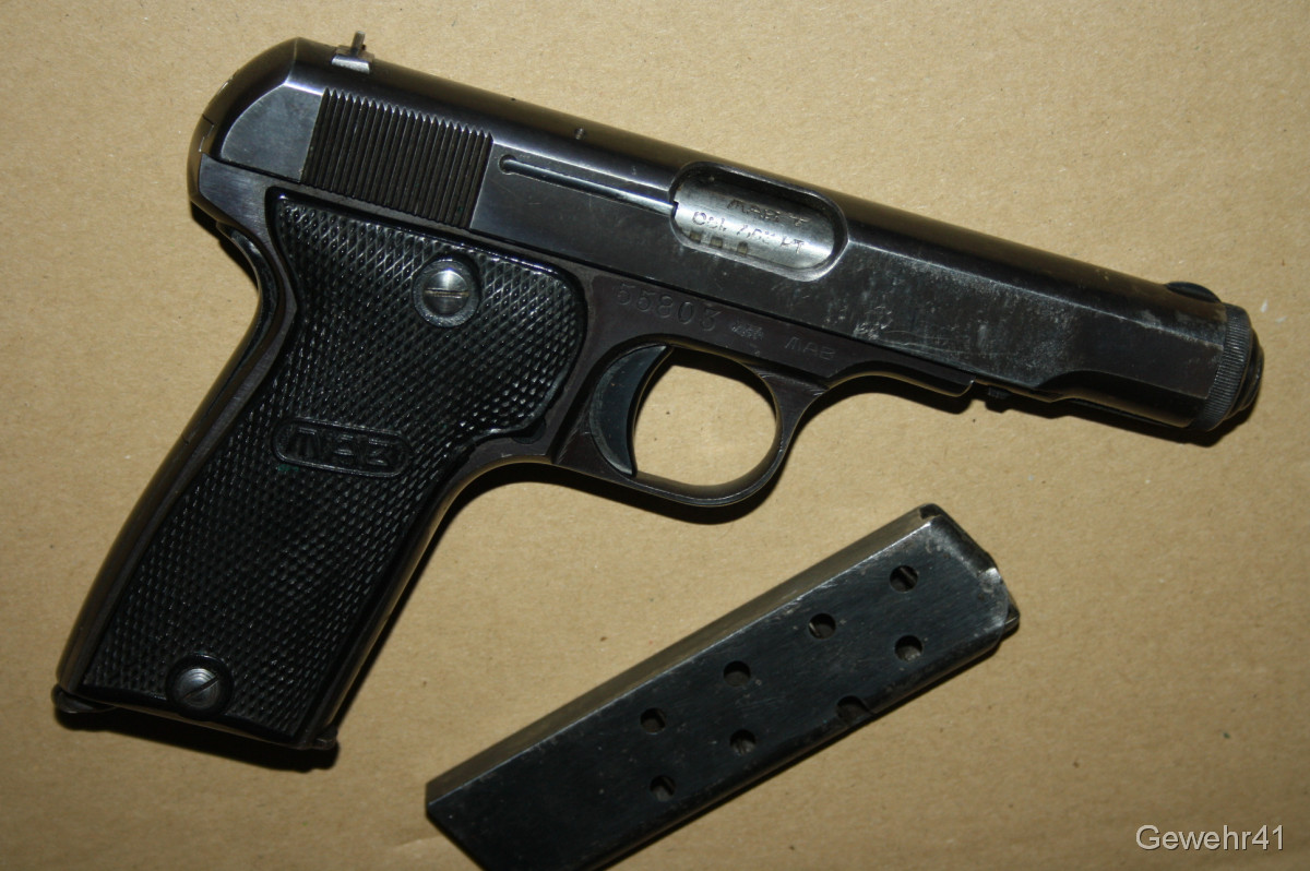 orig. Wehrmacht WK2 Pistole Mab D im Kal. 7,65mm Br. -mit Holster und Reserve-Magazin-