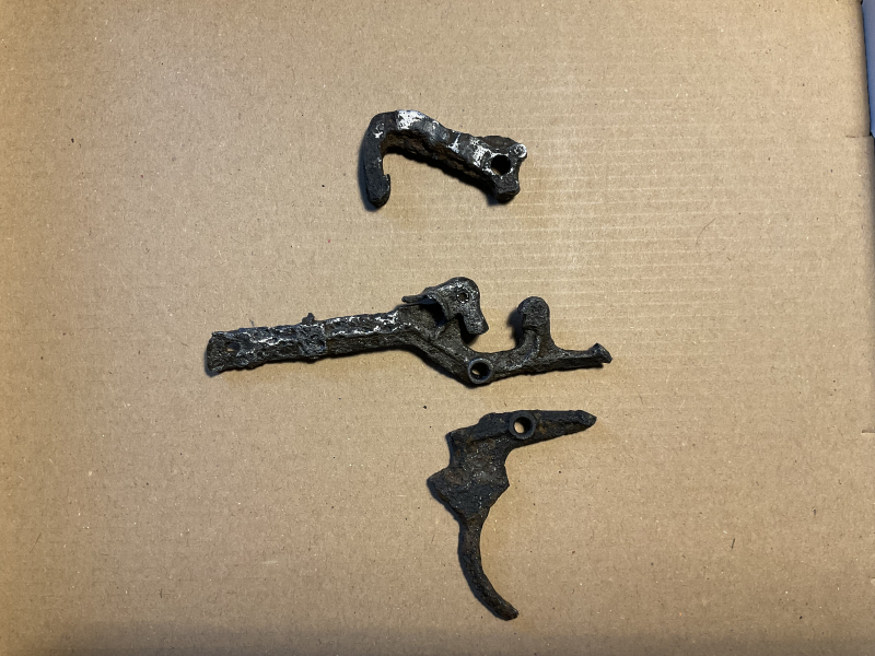 Stammen aus einem Bodenfund. Schwer mitgenommen. Nur für Dekowaffen geeignet. Grob entrostet und gesäubert. Keine Stempelungen zu erkennen. Die vier Distanzscheiben (schlechter Zustand) lege ich gratis dazu.