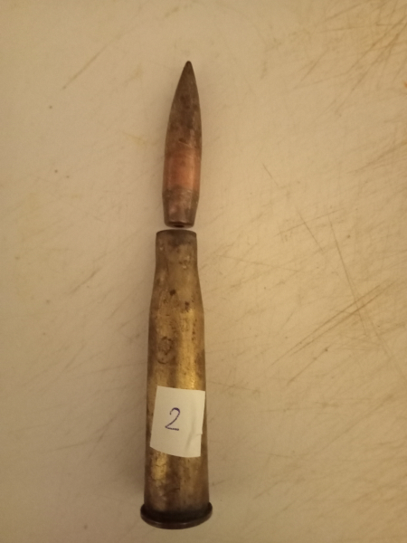Sie bieten auf eine 13mm Panzerbuchsenpatrone mit dem Bodenstempel P-M. es war eine Versuchspatrone mit verkleinertem Pulverraum. Im inneren ist ein Alu-Röhrchen eingelötet. Durch die Spannungsreihe der Stoffe hat die Hülse ein Hülsenbundeinriss. Die Patrone kommt aus Rechlin und ist 100% Original. es gibt verschiedene Patronen mit verkleinerten Pulverraum, die sich nur durch das Gewicht unterscheiden. Frei von allen verbotenen Stoffen. Sie bieten genau auf diese Patrone. Versand aus Deutschland, keine Rücknahme oder Garantie, da Privatverkauf.
