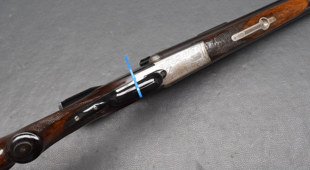 Läufe sehr gut, Brünierung 86%, Schaft gut
