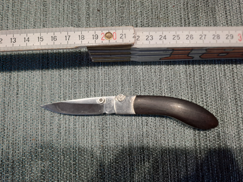 Taschenmesser mit Verriegelung, Einhand von Herbertz. Ein checken Gentlement Folter mit Holzbeschalung