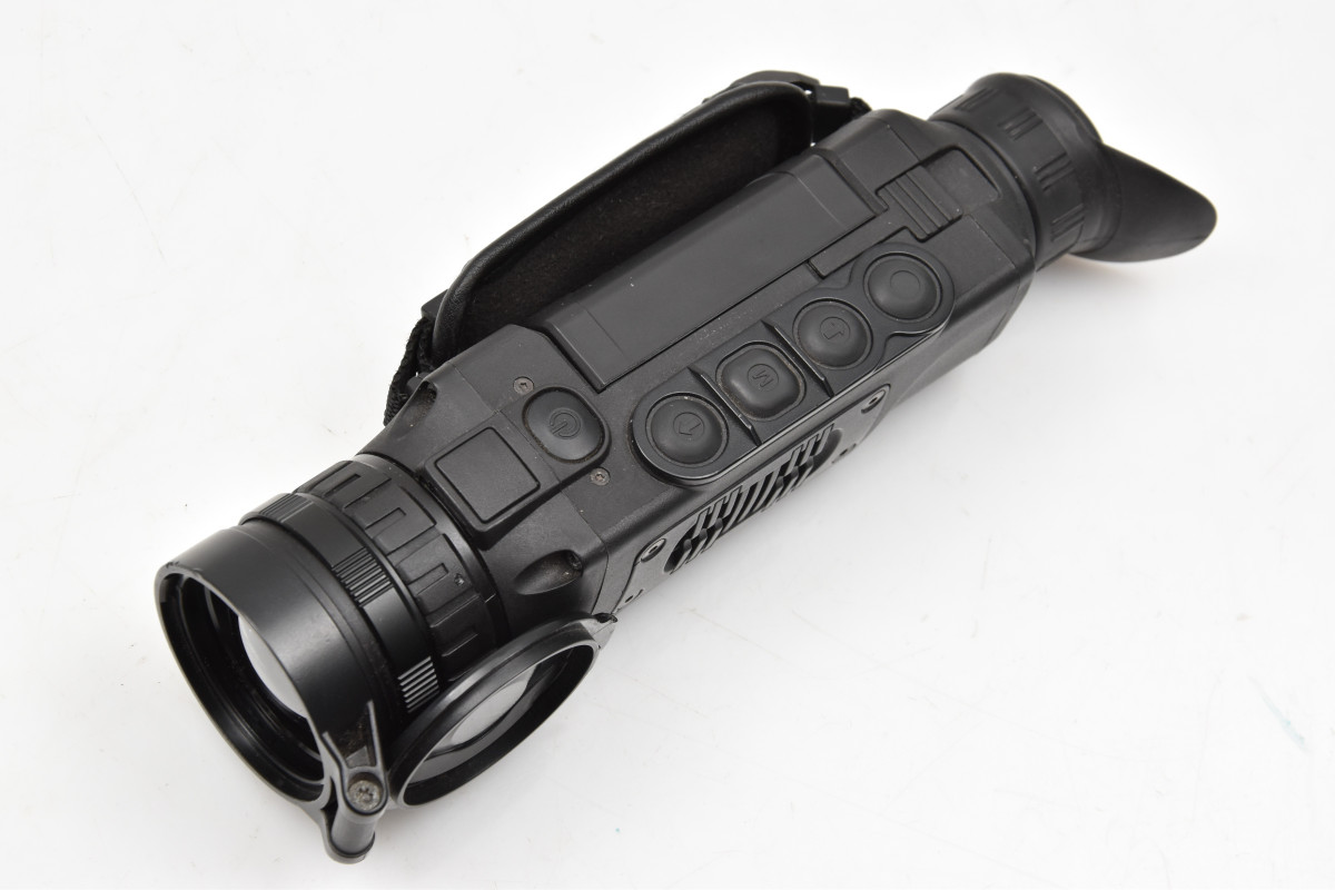 Sie bieten hier auf ein gebrauchtes Wärmebildgerät des Marktführers Pulsar, das Modell Helion XQ50F mit 384x288 Pixel Sensor und einer Brennweite von 50mm. Die optische Grundvergrößerung beträgt 4,5-fach, die per Digitalzoom bis 18-fach gesteigert werden kann.