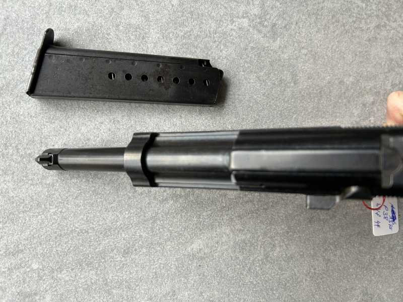 Walther P38 Code byf44 im Kaliber 9mmLuger. Topzustand und Nummergleich.Original Magazin. Griffschalen ohne Risse. Der Kratzer bei der Codierung ist kein Riss, sondern ein kleinen Kratzer. Waffen stammt aus einer Sammlung, wird im Kundenauftrag verkauft. Ohne gültigen Beschuss, d.h. Verkauf nur an Sammler, Händler, Export. Differenzbesteuerung. Alle Angaben nach bestem Wissen und Gewissen. "Beantworte keine E-Mails". Den beschriebenen Zustand entnehmen Sie bitte aus den Bildern. Internationaler Versand ist nur möglich, wenn Sie mir Ihren deutschen Waffenhändler nennen, der den Waffenexport für Sie übernimmt.